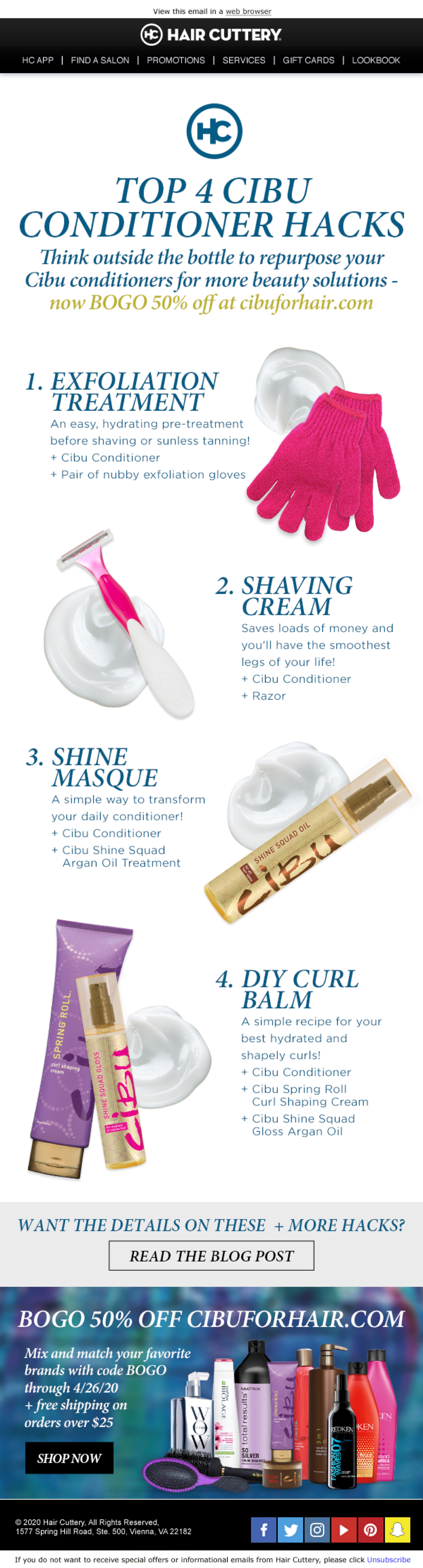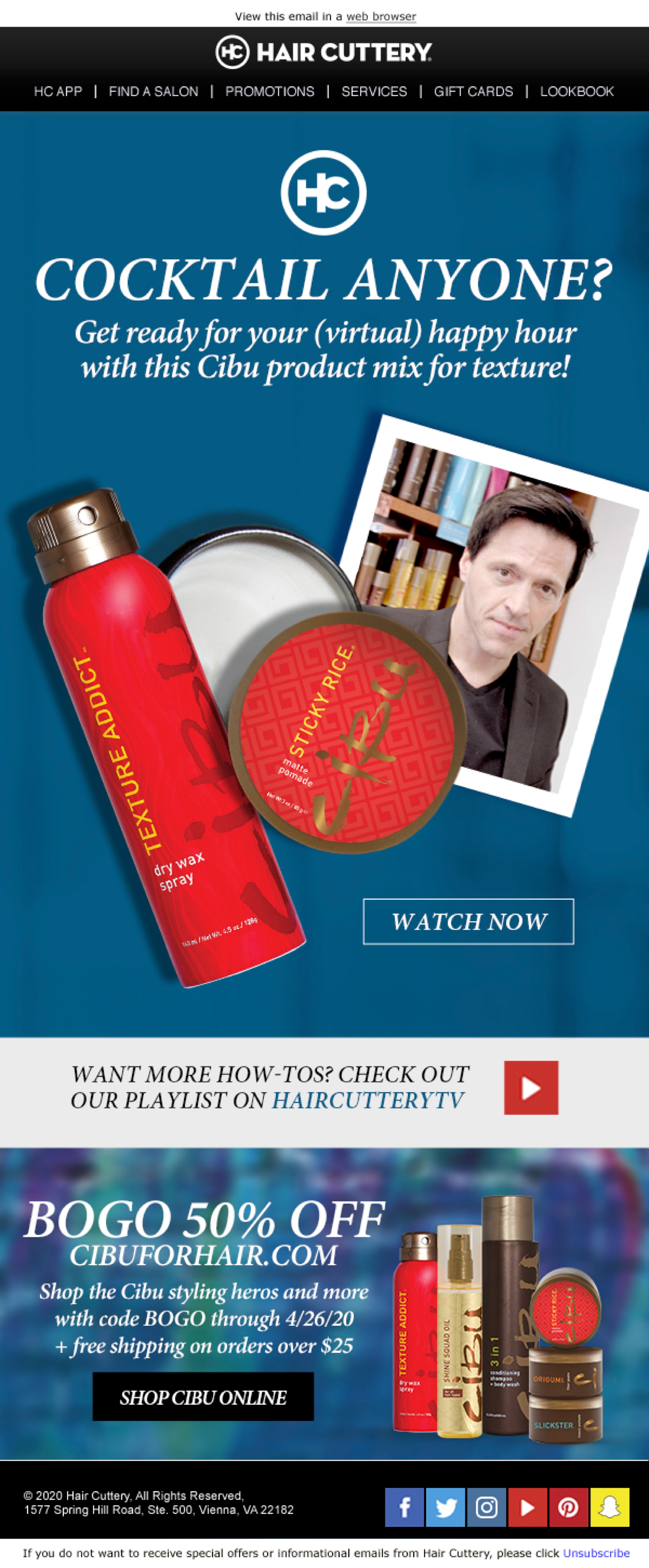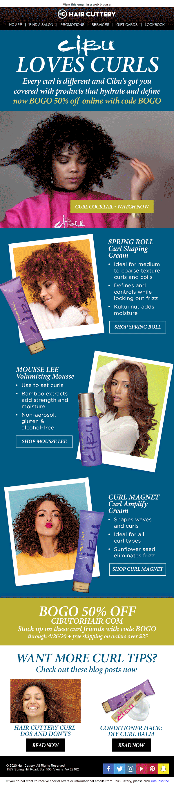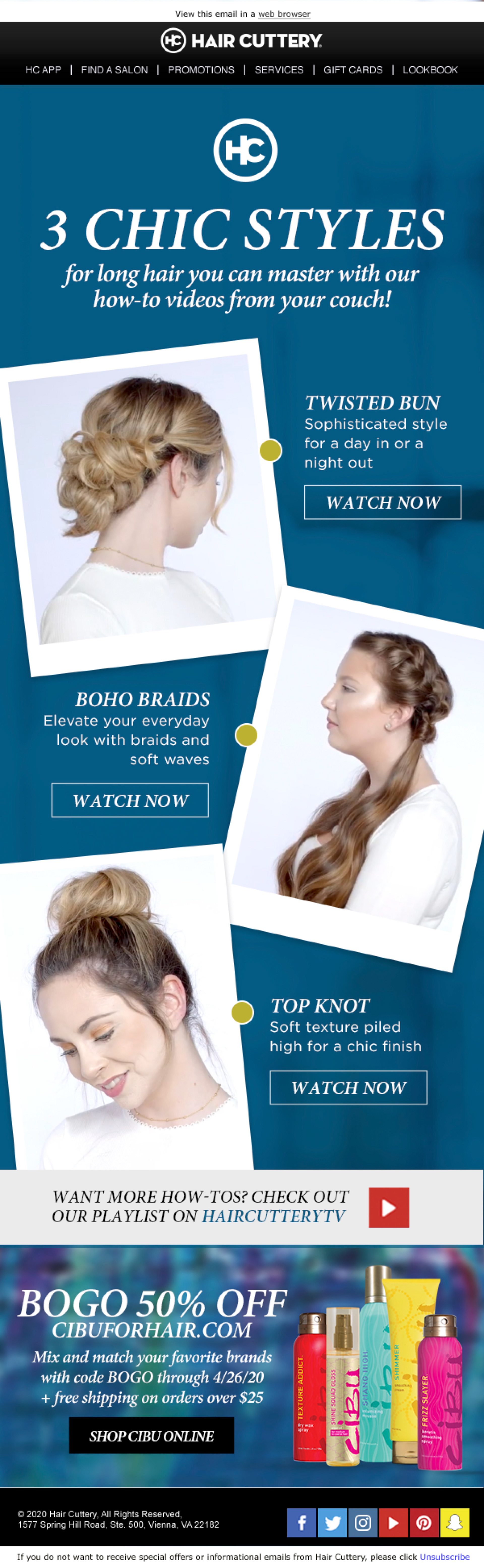 Hair Cuttery, the largest salon chain in the US, reaches its million+ Guests via email and over the last 4 years I have designed 90% of them. This is a handful of the most recent emails I have developed.